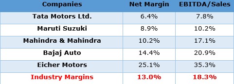 The Indian Automobiles & Auto Components Sector is already in the strong position. Globally, it is at the forefront of many segments, and the sector is gaining momentum in the global market and is also making profits. The reported margin of the industry by analysing the key players was around 7.3% by taking into consideration the last 3 years’ data. Details are as follows.
